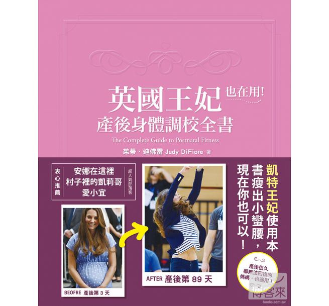 茱蒂迪佛雷奉勸大家:「千萬不要用不專業的塑身書來甩肉!」透過書中傳授的「收身動作」先矯正好身體的肌肉(可以防止骨質流失、增加抱小孩的力氣),再正式投入減肥運動就能安全地瘦下來啦!貼心附上200幅超簡單塑身操,跟著做,平坦小腹、緊實螞蟻腰不是夢!(凱特王妃等等我~)