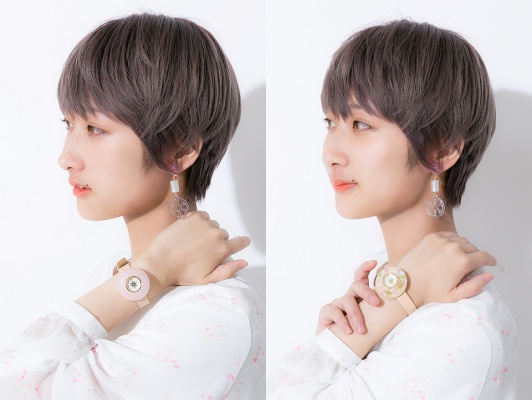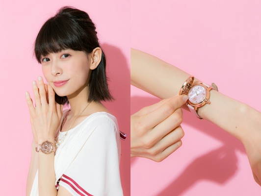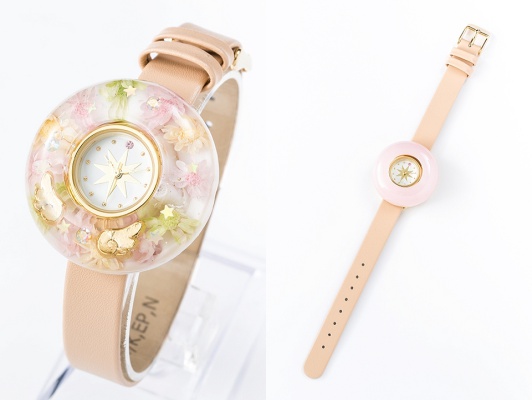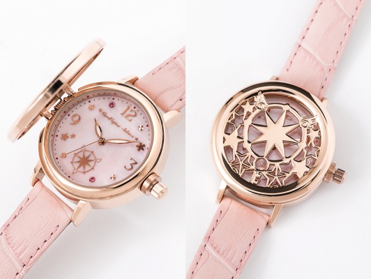 這隻錶作工相當精緻,設計成夢之杖造型的錶蓋,打開之後是淡粉色的貝殼錶面,點綴著水鑽、星星、櫻花等圖案,有種華麗感呢~