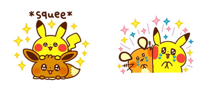 皮卡丘&伊布、咚咚鼠&皮卡丘發動水汪汪眼神攻擊!!!!手機小姐狀態顯示:已融化。這兩張貼圖的殺傷力實在是太大了,看超過三秒會覺得心臟痛,實在太可愛了啦QAQ!!!(痛哭)