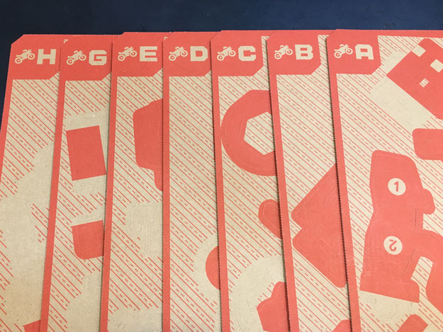 每張紙板上都貼心地標示了對應的遊戲圖示與顏色,讓你可以快速、直覺地的辨識組裝所需的紙板,再加上非常顯眼(大字)的英文編號,即使是粗心、不擅長組裝的人也完全不用擔心呢!
