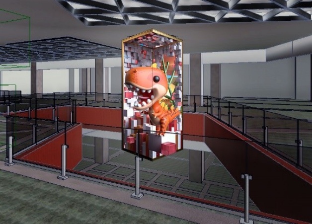 位於2樓天幕空橋上方天花板內崁設置「台灣首創4K解像度大型LED螢幕」,播放大畫面藝術影音等多樣變化的影像,宛如沐浴在日本四季多彩的變化中,不用到日本也能直接體驗;位於南館的迎賓出入口上方則採用與外牆一體化設計規劃的「LED穿透屏」、位於北館六角挑空區中央將會懸吊「360度柱型LED螢幕」,充滿大魄力的影像展演!