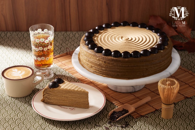 LADY M「台中LaLaport」獨家限定口味「焙茶千層蛋糕」,嚴選日本靜岡焙茶,經高溫烘炒大幅降低茶葉的苦澀,溫和順口獨特的茶香,融入薄透的手煎餅皮和滑順不甜膩的鮮奶油中,選用沖繩黑糖及焙茶,經主廚特製而成的果凍球點綴於頂層面,馥郁茶香及豐富層次的口感!