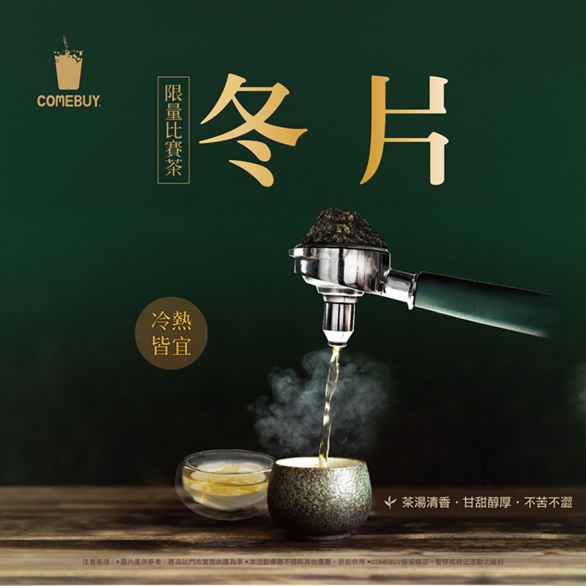 COMEBUY的「冬片茶」回歸啦!又來到一年一度的比賽時節,嚴選今年剛比完賽的南投好茶,茶湯清香、甘甜醇厚、不苦不澀,喝一口唇齒間迴繞特殊花香,搭配專屬杯身及貼紙儀式感滿,售完為止,錯過就要再等1年。