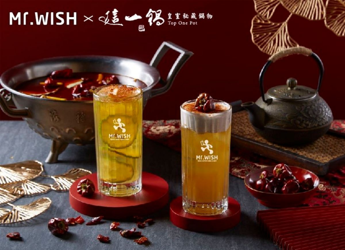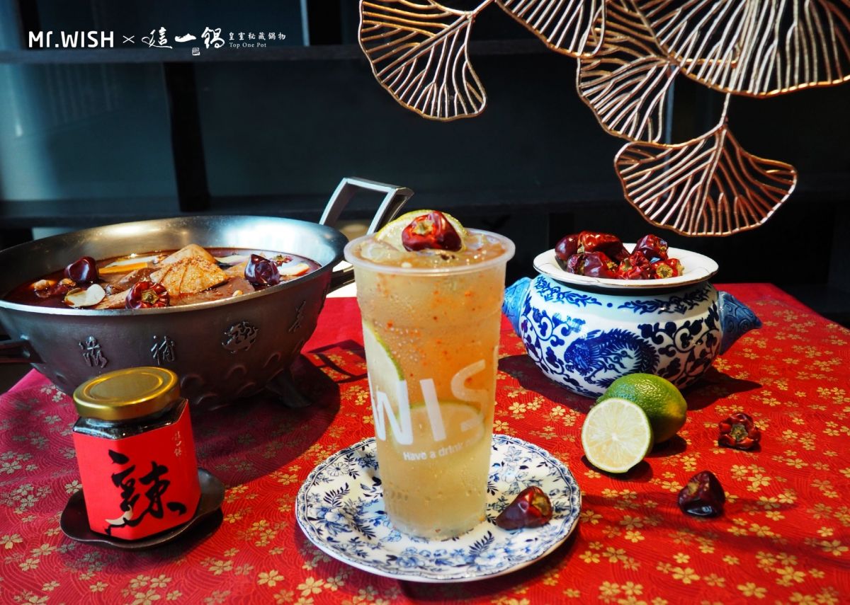 Mr.Wish與這一鍋皇室秘藏鍋物聯名玩出新風味!「辣辣檸檬綠」以清爽解膩的檸檬綠茶加上這一鍋的辣椒粉提味,前韻能感受到燈籠椒及麻辣的香氣,尾韻則有一點鹹香辣感,再搭配檸檬的酸甜;喜歡鹹味奶蓋的手搖控超推「辣芝芝烏龍」,基底是Mr.Wish淺焙的小焙烏龍,上方綿密的芝士奶蓋也撒上了秘制辣椒粉及燈籠椒,麻辣鹹香感十足。
