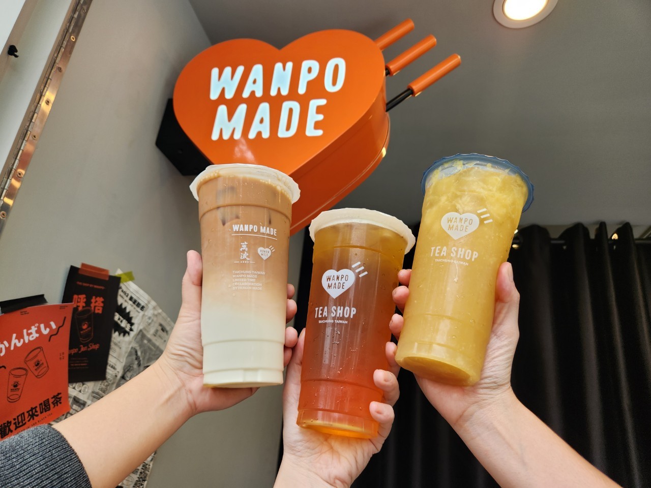 萬波與HUMAN MADE聯名期間,萬波也同步推出由雙方共同研發的新品,「春橙綠茶」選用春天採收的新鮮柳燈作為主要原料,搭配清爽的碧螺春綠茶,散發出柳橙的淡雅香氣,同時保存柳橙果肉;如果希望口感更加豐富,可以選擇加了萬波招牌愛玉的「春橙愛玉」,滑嫩的愛玉讓人忍不住一口接著一口。(萬波×潮流日牌HUMAN MADE「聯名快閃店」!獨家新品心形地墊、製冰盒必收藏)