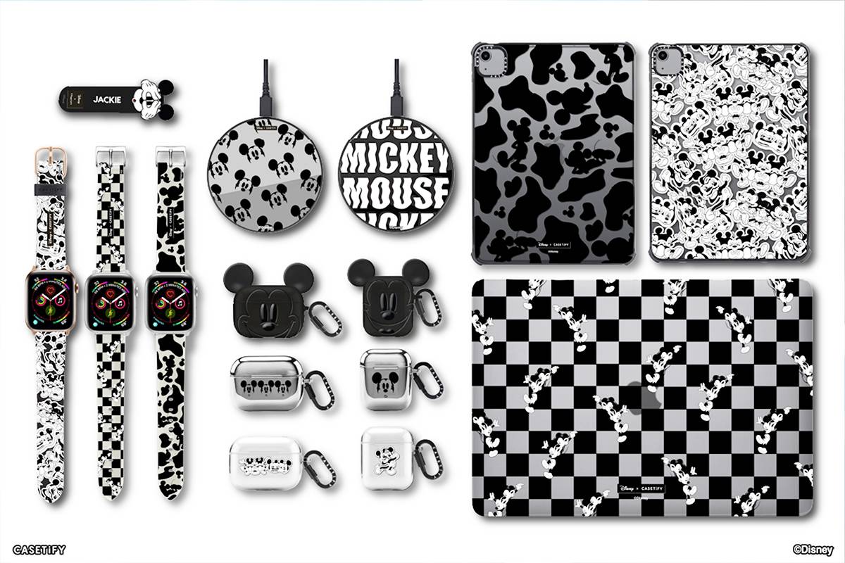 CASETiFY×迪士尼第三波聯名以「黑白色系米奇」為主題,使用吸睛圖案與復古印花,有哈哈鏡反光棋盤格、驚訝捂嘴的米奇、抖抖風、滿版多表情與乳牛紋剪影等。適用於iPhone(iPhone 12系列保護殼也支援MagSafe功能),除了自選圖案之外,訂購時還能挑選防摔、夜光流沙或質感黑色鏡面等手機殼材質,部分款式可額外加入個人化文字。