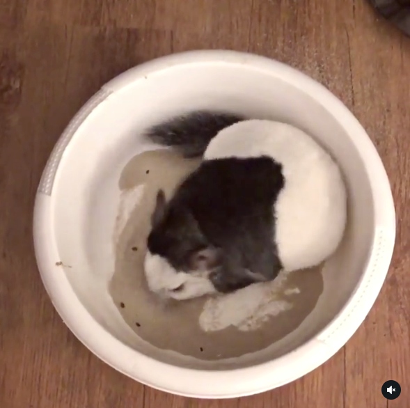 在身體清潔方面也是非常講究,牠們需要使用砂浴(dustbaths)來洗澡,一週可以洗差不多1~2次來保持毛皮的乾燥,只要把砂盆就定位牠們會自己進去打滾,洗完澡的栗鼠會像一顆毛球一樣,超級療癒!而牠們的智商也很高,可以訓練拿一些小玩具、找零食或叫名字等行為!