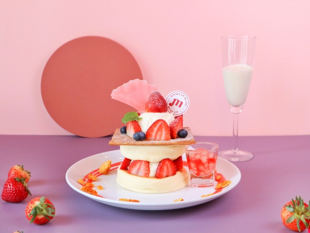 本次草莓季最浮誇的甜點,去年大獲好評的「莓好101」草莓塔,以巴斯克乳酪蛋糕、布丁、巧克力脆片為基底,擺上一顆顆新鮮草莓後擠上鮮奶油,今年除了有普通版笨之外,還加碼帶來「高度將近20公分」的豪華版本,上桌絕對是手機先食!