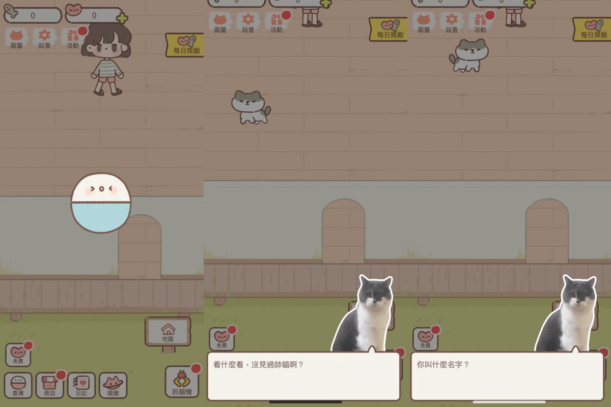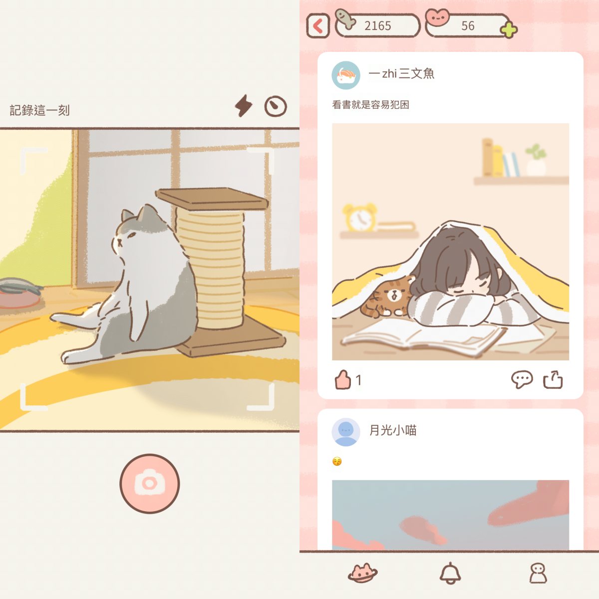 遊玩時還能不定時解鎖「特別的照片」,點選快門拍下珍貴一刻,還能發到虛擬社群平台「喵圈」中紀錄生活。在「喵圈」中,可按讚、留言與分享,就像是使用臉書一樣。