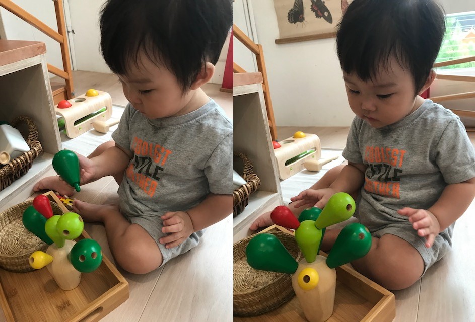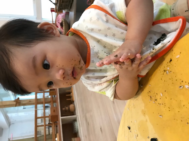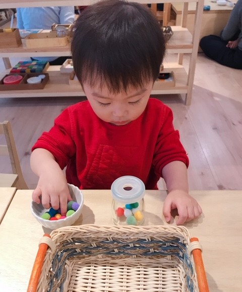 在孩子7、8個月的時候,我因為太害怕在家裡跟孩子大眼瞪小眼,開始帶他接觸了蒙特梭利親子教室課程,就這樣一路到進幼兒園前,從還是爬行期到自己DIY做蛋糕,在沒有預設的期待下,我學習到非常非常非常多。第一次親子課時,只覺得阿姨(那裡不稱老師)講話很溫柔、很慢,懂得孩子的心理發展,知道與孩子的應對與引導,這是我對蒙特梭利動心的第二個浪漫,因為在生活中,講話溫柔可徐、面對孩子失控還能不動聲色的人幾乎不存在,我們都需要有人讓我們做借鏡,時常提醒自己,才能不離理想的樣子越來越遠。