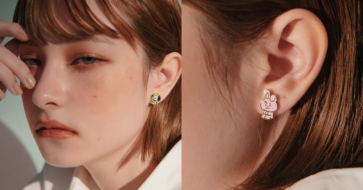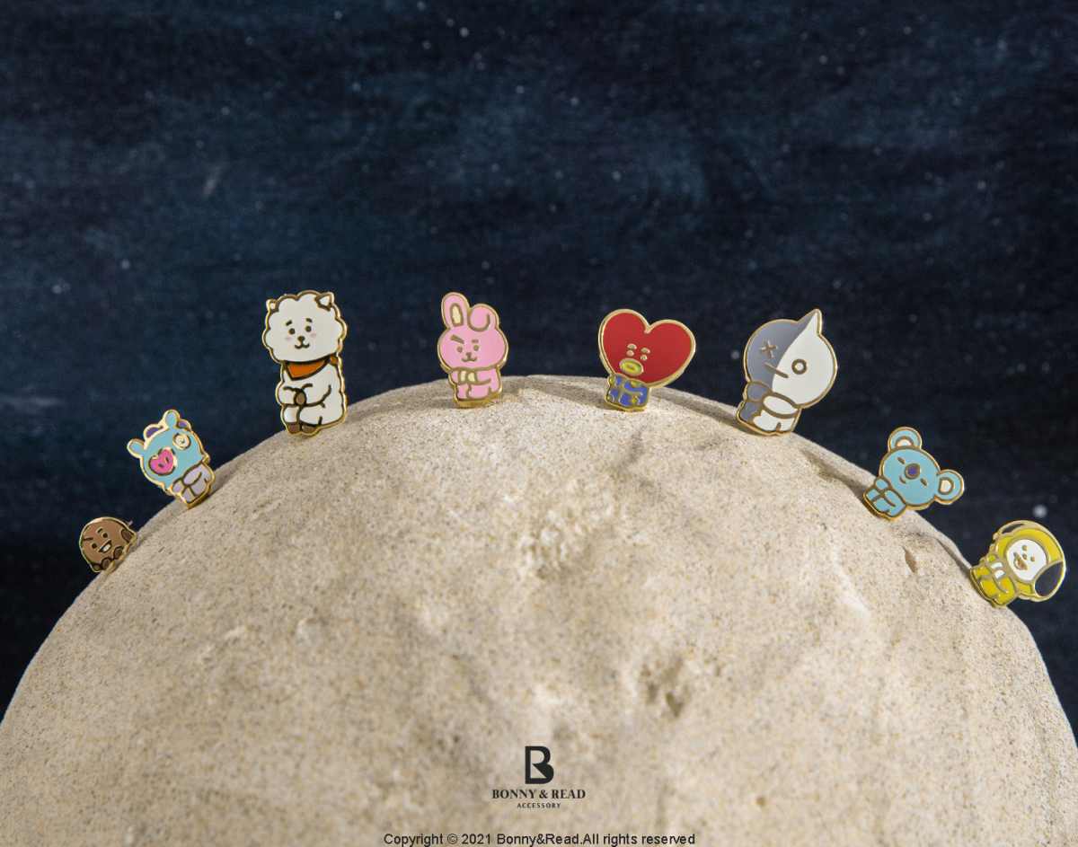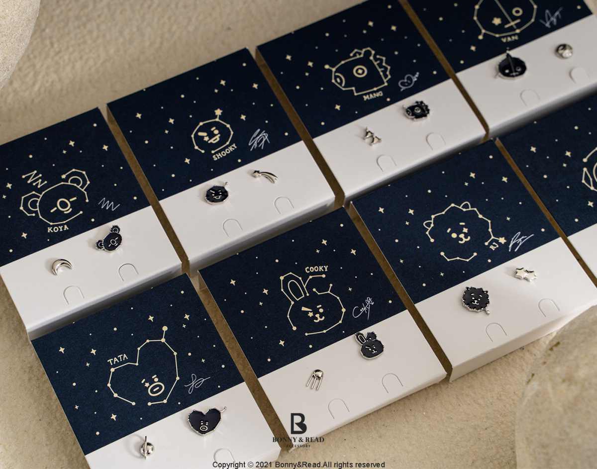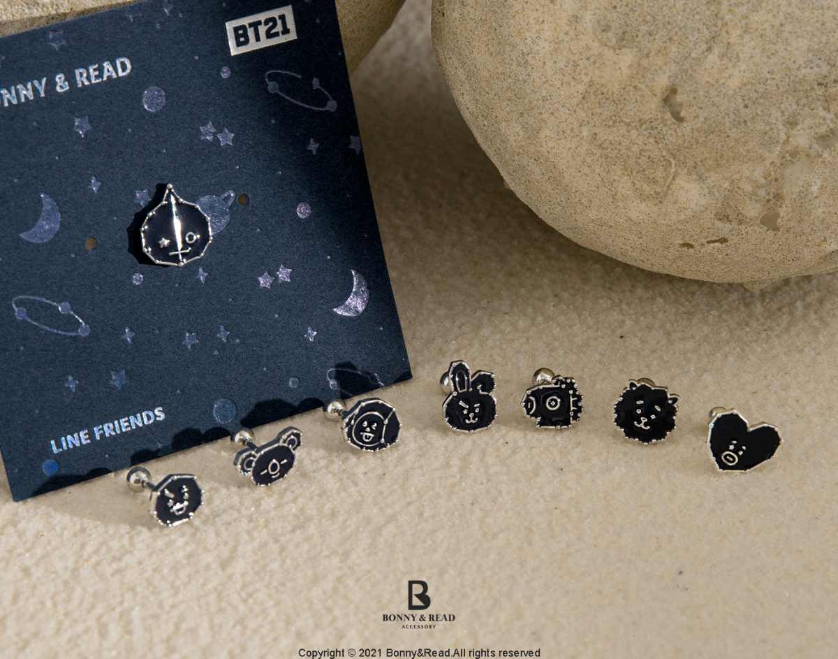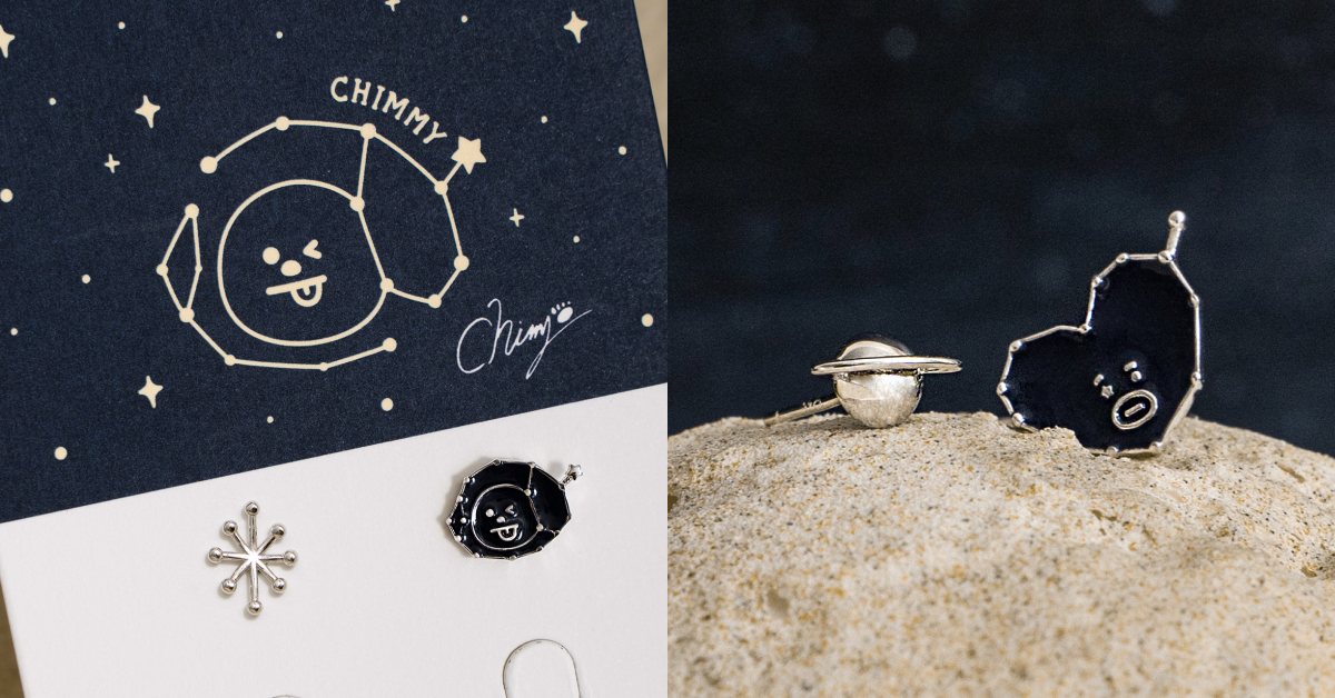 另一款「星空」系列則是把BT21的角色用星系線條呈現,而且選擇了沈穩內斂的深色系來展現BT21與平常不一樣的風格,同系列也有以「鈦鋼耳環」可以選擇,就算是敏感膚質的妞妞們也可以將自己喜歡的角色戴上。