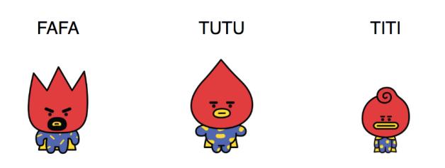 TATA是BT行星王族,因為討厭被皇宮困住的關係所以逃出來,是三兄妹中的老二,「爸爸FAFA」是嚴肅威嚴又有蓄鬍的國王,而王室繼承第一順位的「哥哥TUTU」性格跟TATA相反(被笑說很像美妝蛋和水晶餃XD),「妹妹TITI」雖然是個野丫頭,但個性直率,氣勢一點都不輸給哥哥們,之後FAFA會來地球把TATA帶回王宮!