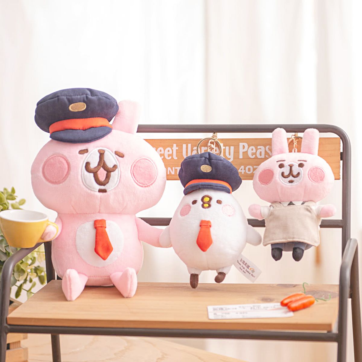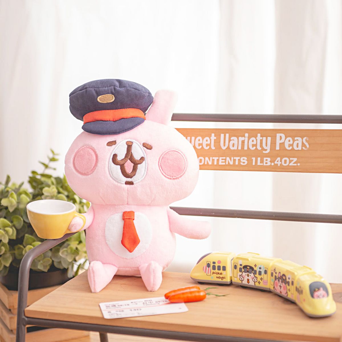 歡迎搭乘台灣高鐵,讓我們歡迎列車長兔兔&P助登場!(掌聲鼓勵)毛絨玩偶結合台灣高鐵特色,兩位戴上車長帽並繫上橘色領帶,還讓兔兔「兼職」車廂服務員,穿上了卡其色圍裙,造型不只可愛,更讓人感到親近!
