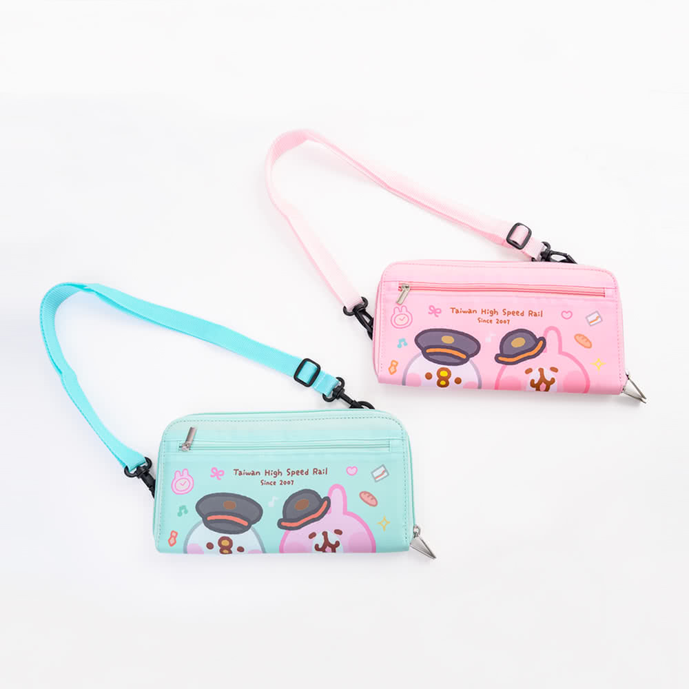 這款包包大家是否覺得有點眼熟呢?沒錯,它就是高鐵工作人員身上腰包的「改版」哦!印有兔兔&P助的皮革包為兩用,可肩背或繫在腰上作為腰包使用,內有隔層可放手機。(註:手機尺寸在5.5吋以下都能放入)