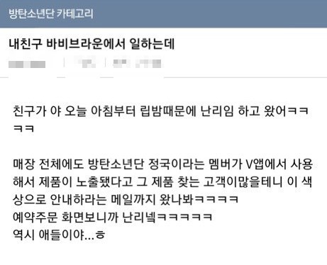 造成搶購熱潮的始作俑者(?)就是這位…防彈少年團的忙內「田柾國」!人氣席捲全世界的「世界彈」,柾國更被美國媒體封為Vocal King、文藝復興MAN成為關注焦點,聲勢暴漲的他當然也正常發揮了「BTS完售效應」,在影片中只是短暫的擦上潤唇膏,馬上被眼尖的粉絲肉搜出來品牌、色號,立刻詢問度爆表!甚至在幾個月前才擦過的「柾國款」潤唇膏品牌還沒到貨(?),又得讓粉絲排隊買新的了!(阿米的腎…果然需要好幾打XD)