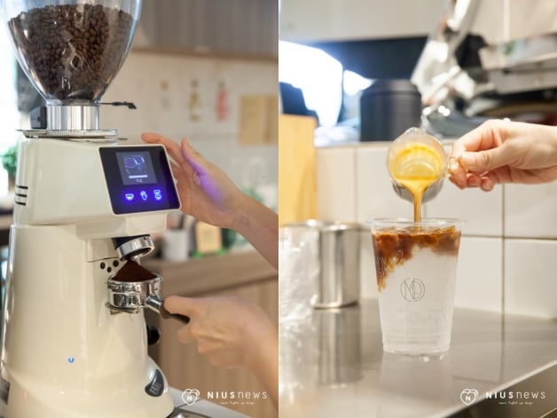 店內採用的義式豆選用「耶加雪菲」、「西達摩」、「巴西」和「哥倫比亞」等四種綜合豆,與豆商長期合作,烘焙程度屬於中深焙,剛入口有莓果和焦糖味,尾韻則帶有烤堅果和微微可可香氣!