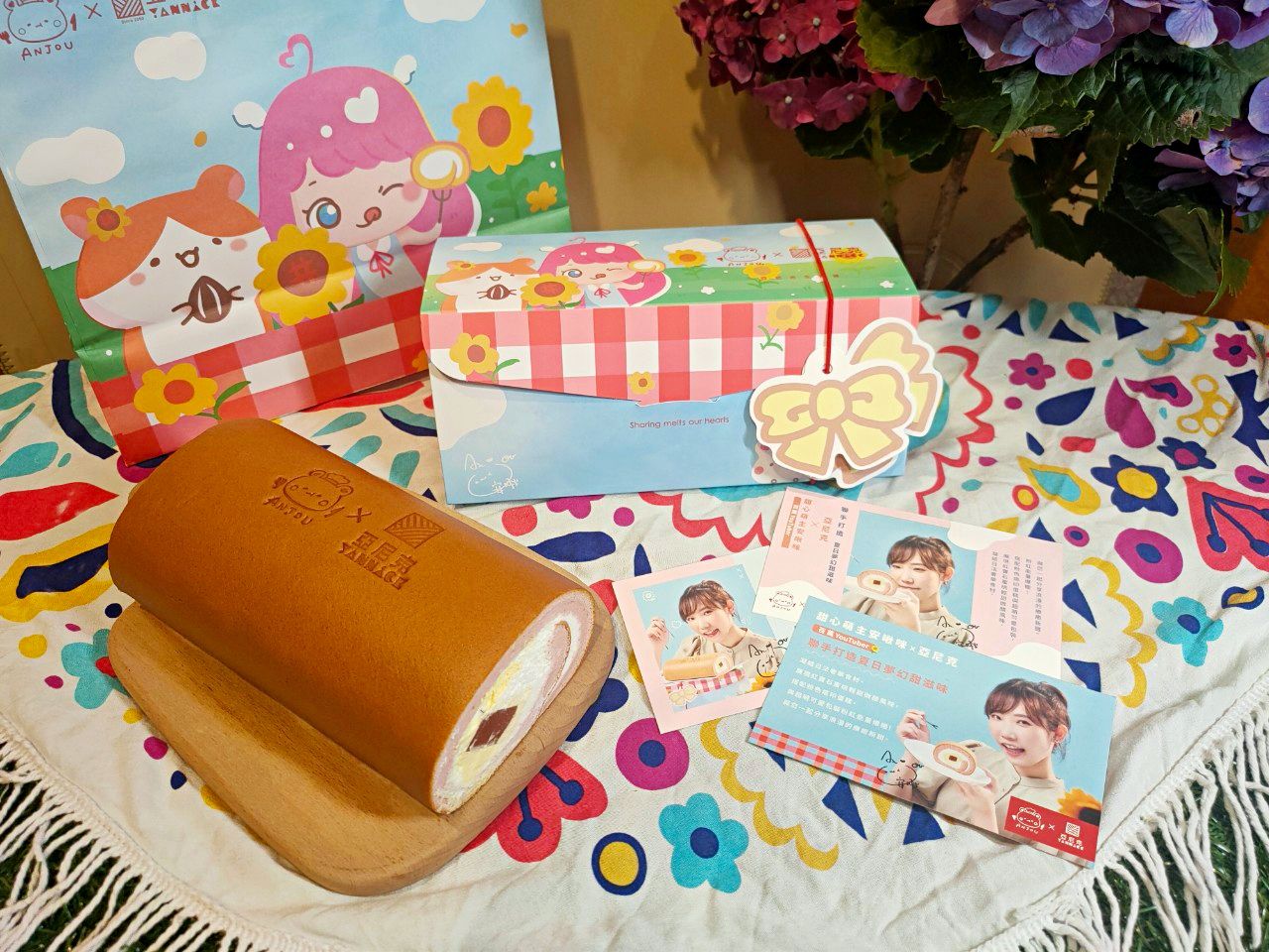 生乳捲外皮上不只烙有安啾咪親自繪製的「安啾鼠」,外盒、提袋到吊牌,更都是由「安啾咪」本人親自繪製包裝,以向日葵和藍天的印象進行創作,搭配鄉村風格野餐墊格紋設計,讓大家即使在家防疫,也能假裝自己安啾咪一起在向日葵花田野餐呢~每條聯名生乳捲內還附有安啾咪簽名的小卡(三款隨機附贈),歡迎粉絲們一起來收藏,與安啾一起慶祝倉鼠五週年。