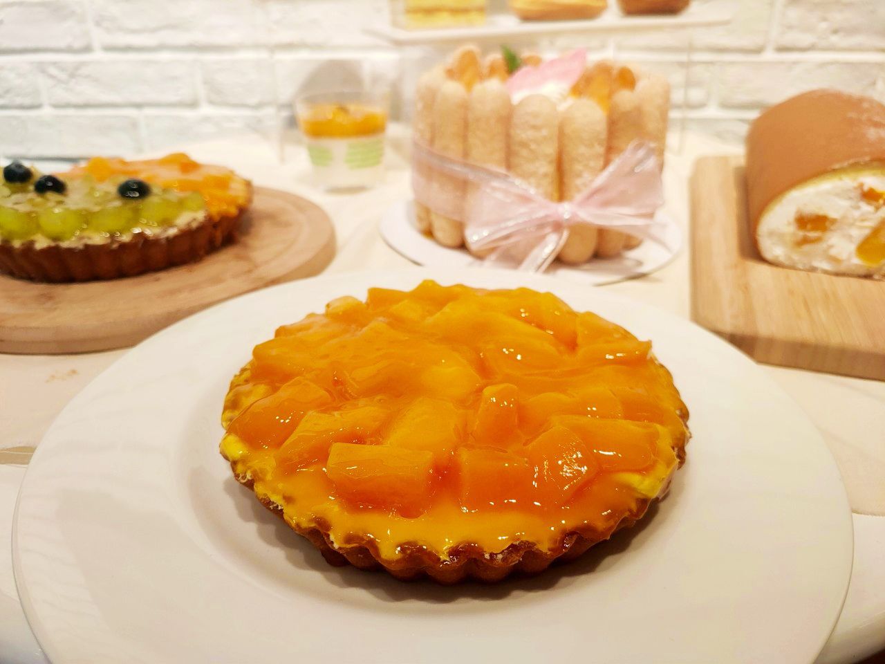 蛋糕及小甜點則是有「鮮芒夏洛特」、「義大利鮮芒奶酪」、「北海道泡芙蛋糕」、等,以及「冰雪女王」、「陽光馬德里」切片蛋糕,金黃色系甜點一字排開,想怎麼吃就怎麼吃!(鮮芒奶霜大泡芙、芒果奶霜兩款,因為疫情關係停產)
