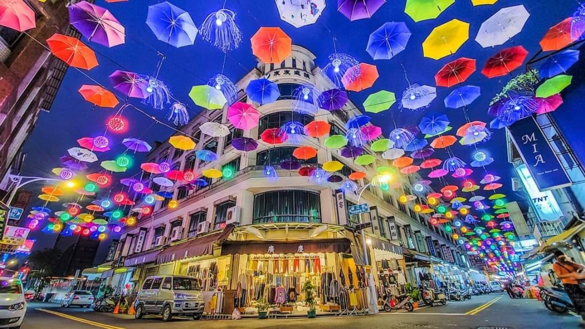 到了夜晚時分,商圈也將會點起燈飾,彩色的雨傘搭配藤燈、水母燈映照出的燈光也變得更美了,形成了另外一種樣貌~妞妞們來打卡拍照之餘,別忘了到附近吃吃美食、挖寶看看,還有機會找到又便宜又好看的衣服呢!