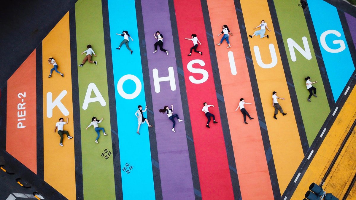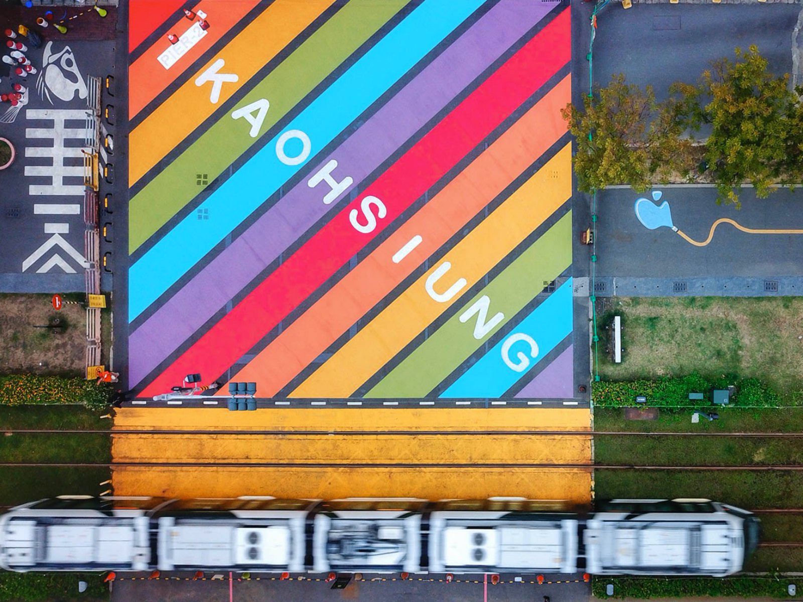 彩虹萬歲!全台最大「彩虹斑馬線」填滿整條路口啦~由6種顏色組成12條斜紋色塊,彩虹上頭寫的還是高雄這座城市的名字呢,由上往下拍起來真的超級美!不過妞編輯要提醒大家在捕捉零死角、怎麼拍都好看的巨大彩虹之餘,因為彩虹地景與輕軌、停車場相鄰,拍攝時務必小心安全喔!