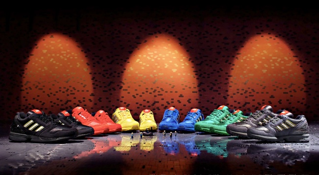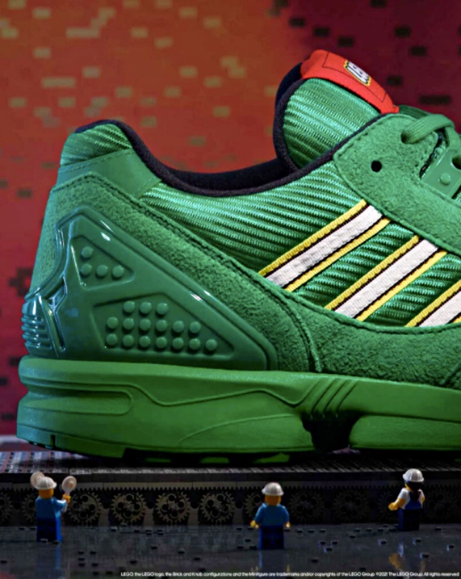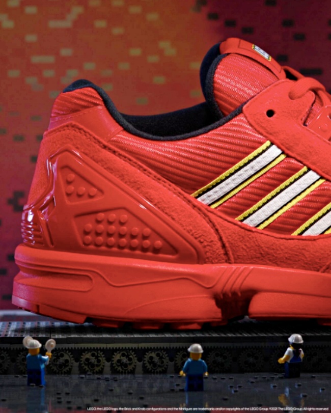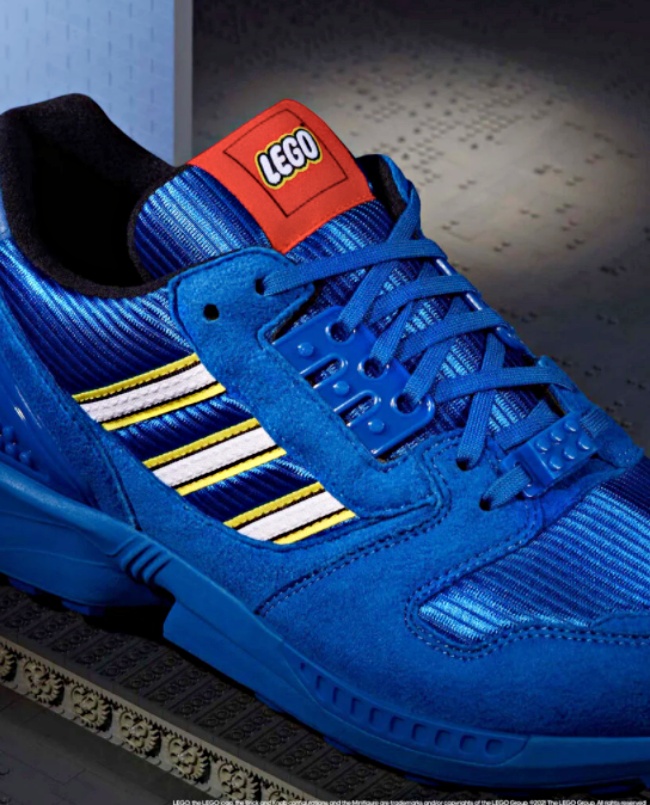 看來小人偶們狂加班吼?這波還以樂高的紅色,綠色,黃色,藍色,黑色和灰色6大招牌色為主色系,一口氣推出6雙ZX 8000,鞋面拼接透氣網眼以及合成絨材質,單色系也不單調,樂高元素也偷偷藏在細節裡。