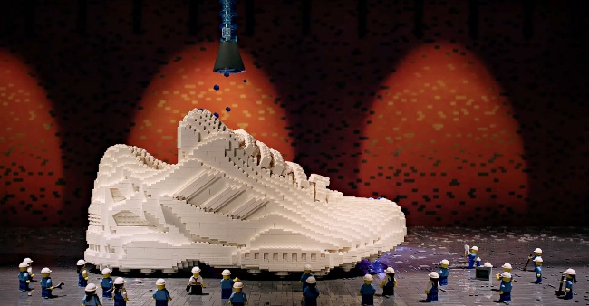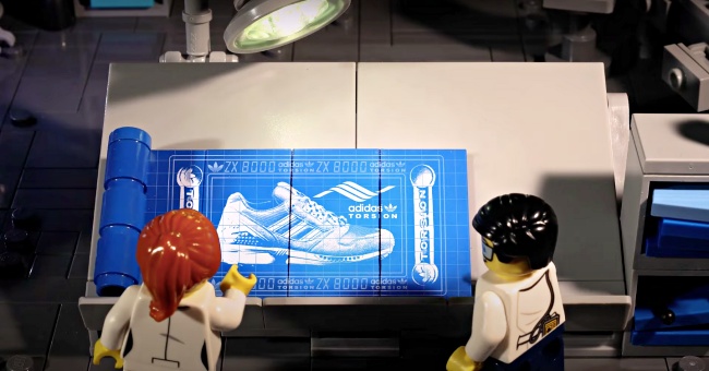 繼前幾波把ZX8000球鞋、Ultraboost DNA跑鞋變成「樂高版本」之後(點我回顧),5月居然玩更大的(笑)!讓我們先把畫面拉到樂高工廠裡,大批工人裝扮的小人偶正在秘密施工中,設計師還謹慎的確認設計圖,出動怪手搬運一個個樂高積木,這個超大型的神秘物件就是最新的「聯名ZX 8000積木鞋」啦~
