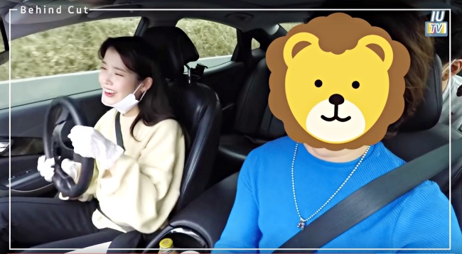 沒想到這一路的新車試乘影片都是IU「辛苦的演技」!終於下戲走出車外的IU,手上居然拿著一個假的方向盤(笑)?原來為了騙倒粉絲們,IU運用相反鏡頭,加上精湛的演技(爸爸也超強),讓爸爸全程駕駛卻拍成像是IU真的考到駕照上路了!
